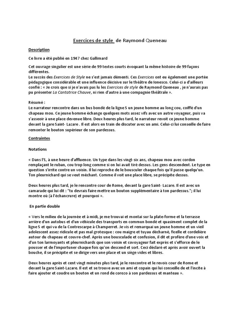Rsum exercices style raymond queneau - To discover the image more plainly in this article, you are able to click on the wanted image to see the graphic in its original dimensions or in full. An individual can also see the Rsum Exercices Style Raymond Queneau image gallery that all of us get prepared to discover the image you are searching for.